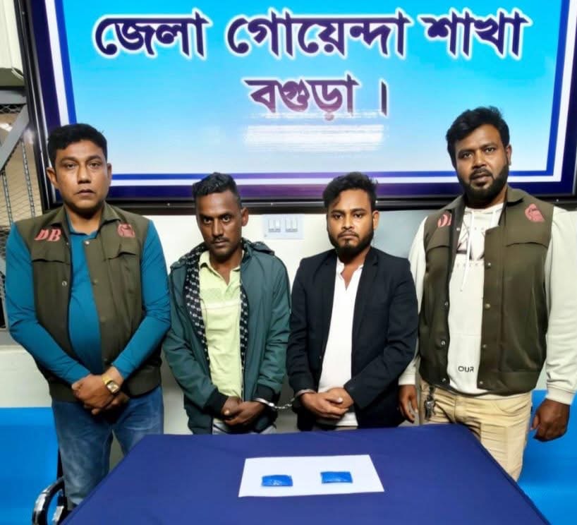 জেলা গোয়েন্দা শাখা বগুড়া’র বিশেষ অভিযানে ৫০০ পিস ইয়াবা ট্যাবলেটসহ রুবেল ও হানিফ নামে দুই ইয়াবা ব্যবসায়ী গ্রেফতার। আজ শনিবার