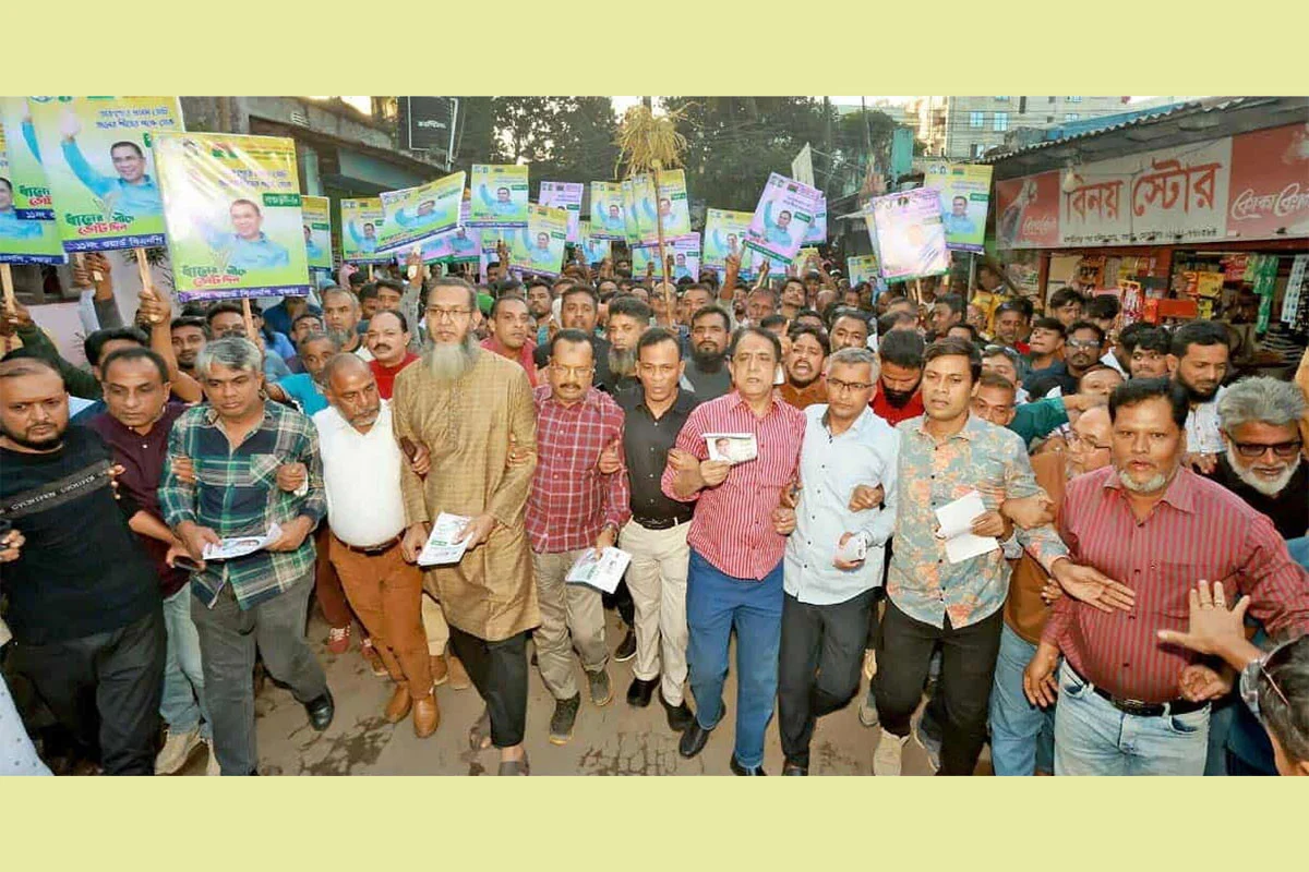 আসন্ন ত্রয়োদশ জাতীয় সংসদ নির্বাচনে বগুড়া-৬ (সদর) আসনে বিএনপির ভারপ্রাপ্ত চেয়ারম্যান তারেক রহমানের পক্ষে ধানের শীষে ভোট চেয়ে মিছিল, গণসংযোগ,
