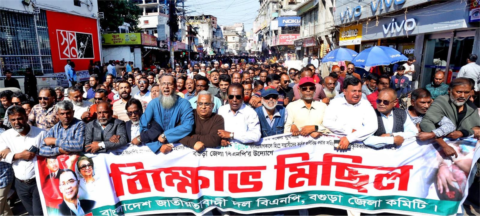 ইনকিলাব মঞ্চের মুখপাত্র হাদিকে হত্যা চেষ্টার প্রতিবাদে বগুড়ায় বিএনপির বিক্ষোভ মিছিল ও সমাবেশ
