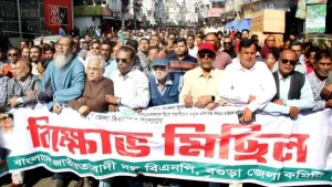 ইনকিলাব মঞ্চের মুখপাত্র হাদিকে হত্যা চেষ্টার প্রতিবাদে বগুড়ায় বিএনপির বিক্ষোভ মিছিল ও সমাবেশ